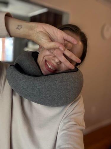 Oh, this pillow is so soft! I even took a photo to show how well it supports my head. Its an essential travel companion, although I have to admit I also use it at home while watching TV. My neck feels relaxed, and its so soft.